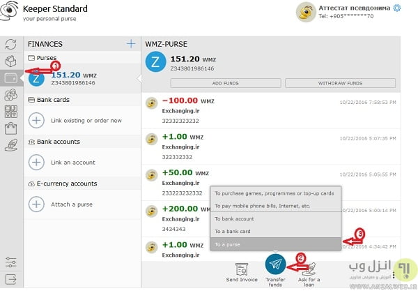 از کیف پول وب مانی برای واریز و برداشت پول استفاده میشود.