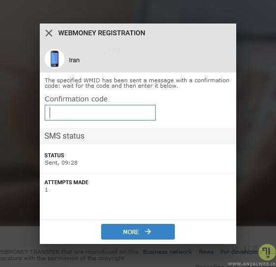 کد ارسال شده به گوشیتان را وارد کرده و دکمه more را بزنید تا تایید هویت شوید
