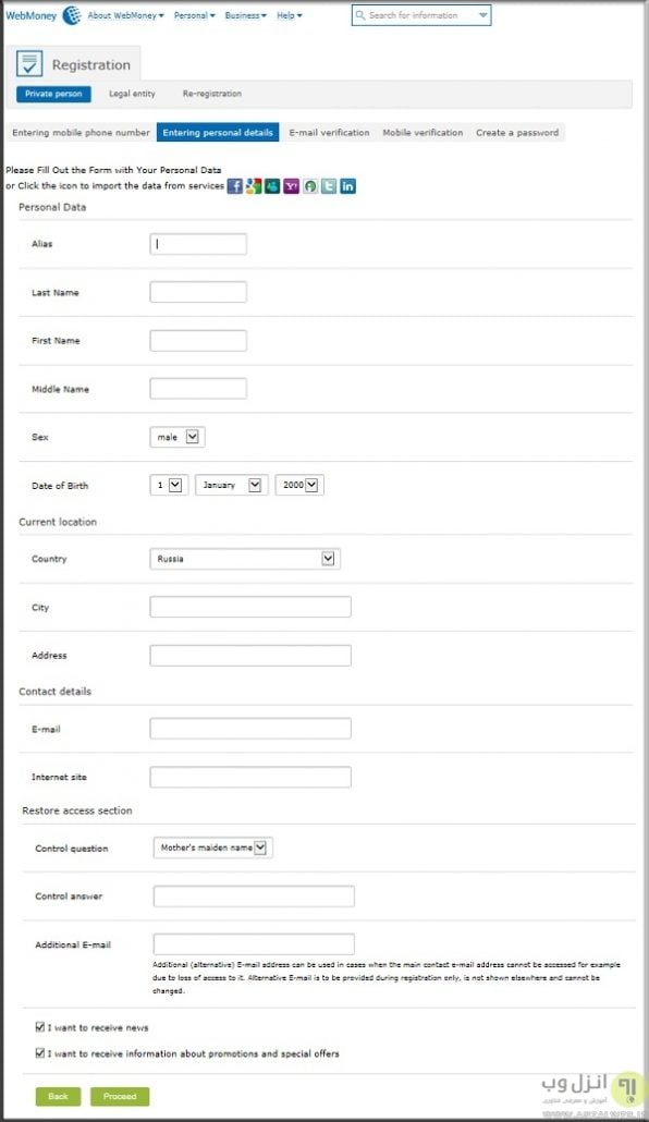 حالا اطلاعات شخصی خود را به صورت دقیق وارد کنید و بعد از پر کردن فرم دکمه proceed را بزنید