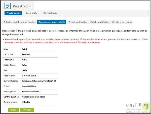 در این مرحله شما باید اطلاعاتی که وارد کردید رو مجدد چک کنید و از درست بودن ان مطمعن شوید و دکمه proceed را کلیک کنید