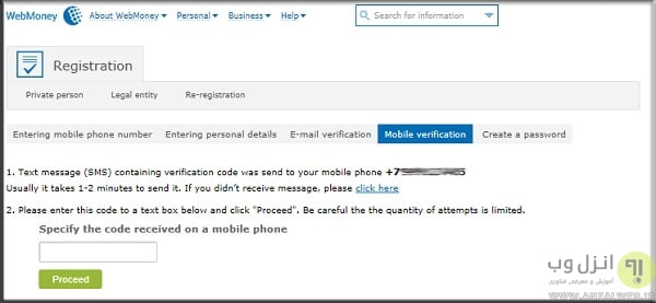 در این مرحله کدی که به شما پیامک میشود را وارد کنید و دکمه proceed را بزنید