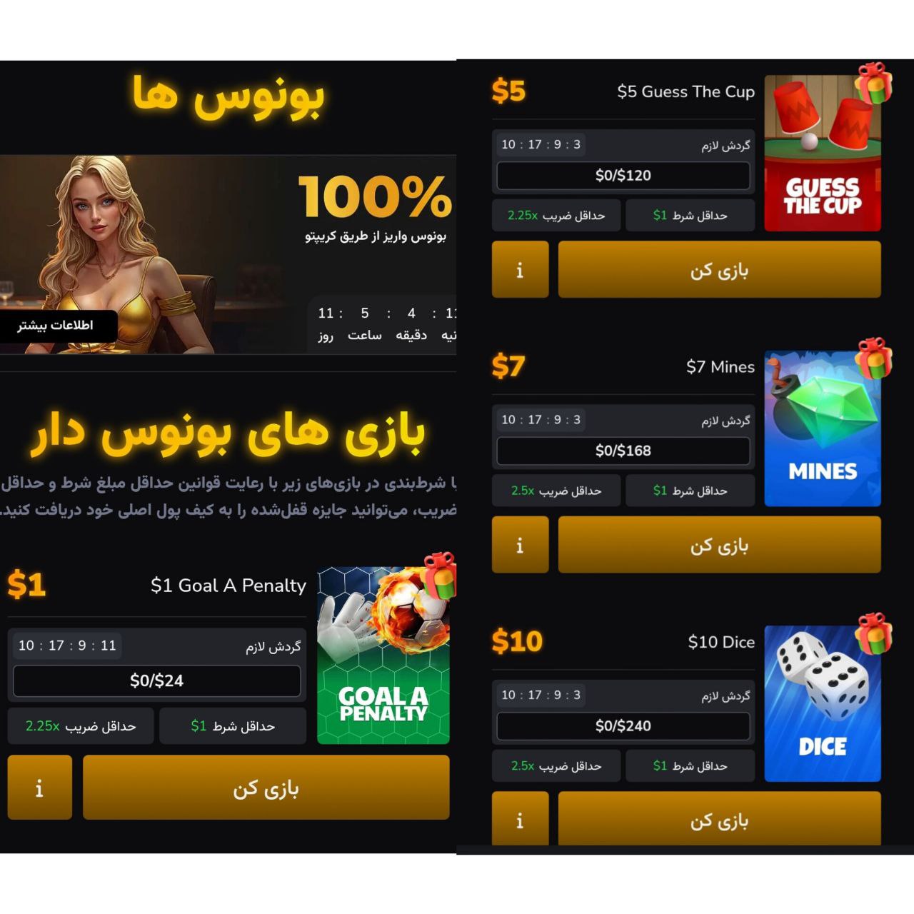 پس از آن امکان استفاده از بازیهای بونوس دار وجود دارد که شما با شرط بندی در بازیهای زیر و با رعایت قوانین میتوانید جایزه قفل شده را به کیف پول خود بازگردانید.