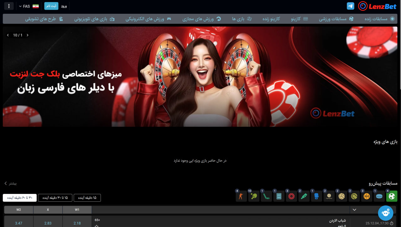 پس از آن دستهبندی بازیهای ویژه در سایت وجود دارد که در حال حاضر بازی ویژه خاصی وجود ندارد. منظور همون بازی های هیجان انگیز و جذاب است که احتمال شرط بندی شما را بالا میبرد.