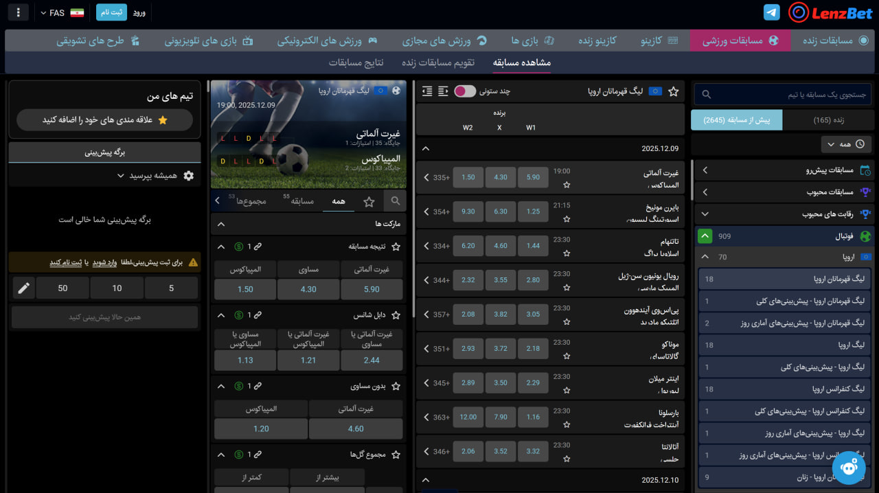 در سایت لنز بت در قسمت ورزشی شما به آپشنهای بهتری دسترسی دارید و میتوانید بازیهای بهتری را پیش بینی کنید.