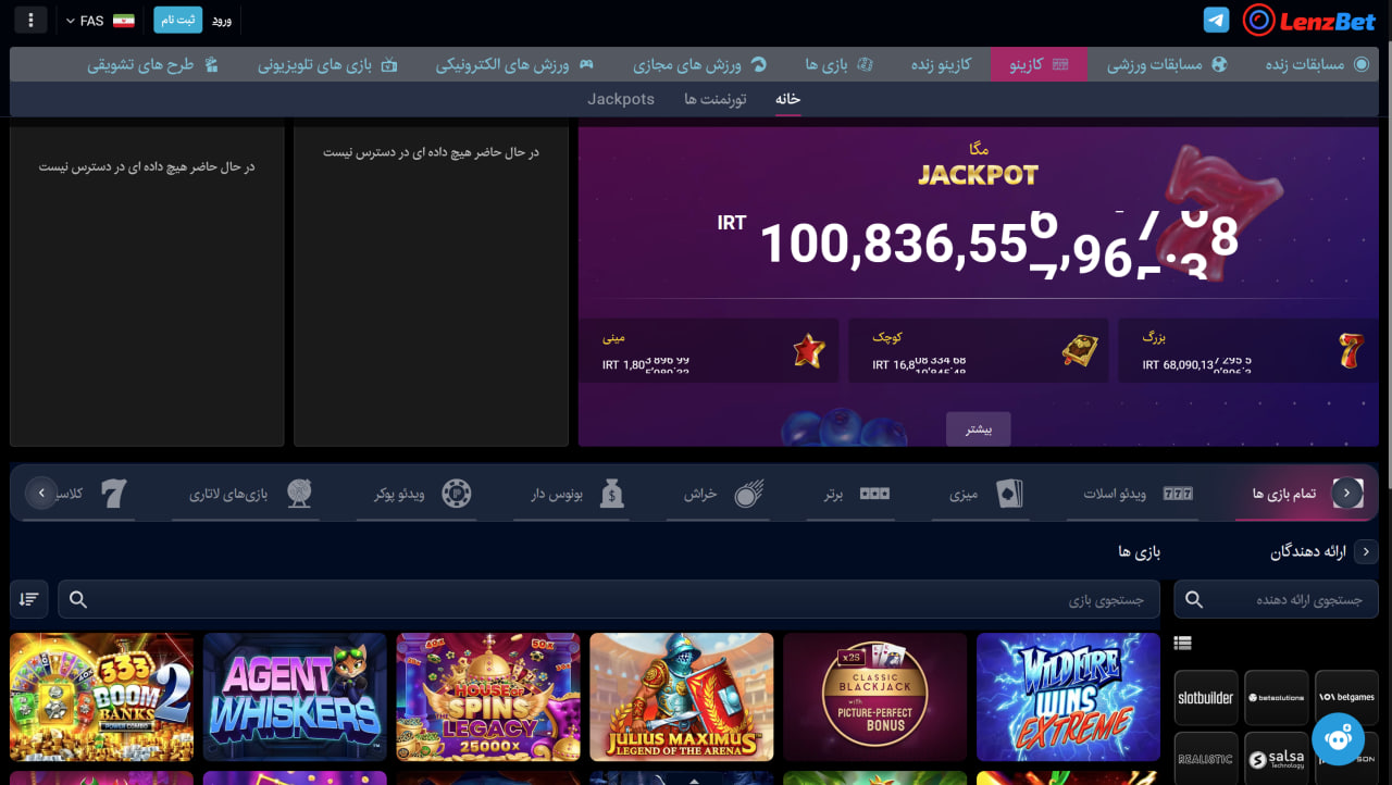 در سایت لنز بت به طور کلی این بخش به دستهبندی مختلفی تقسیم میشود شامل بازیها و کازینو میباشد.