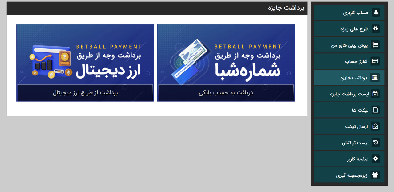اگر در این سایت شما حساب خود را با روش بانک شارژ کنید برای برداشت جوایز نیاز به استفاده از همین روش دارید.