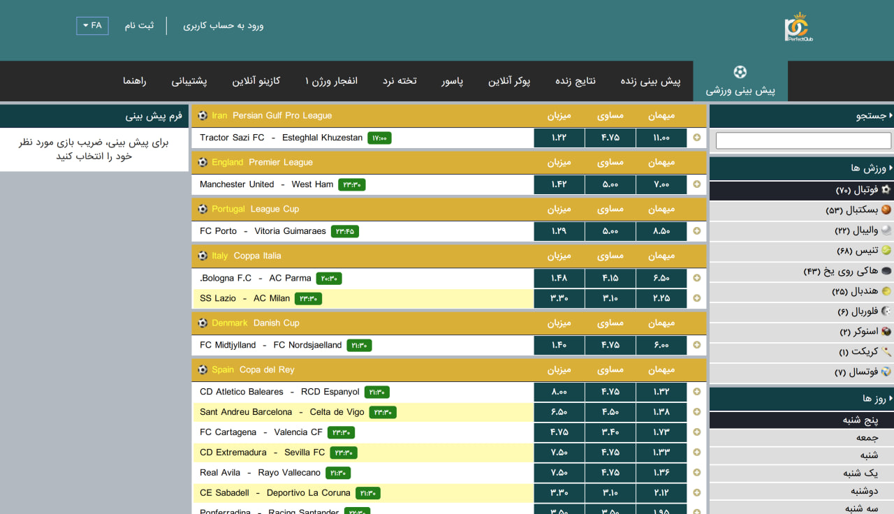 آدرس های سایت شرط بندی پرفکت کلاب Perfect Club